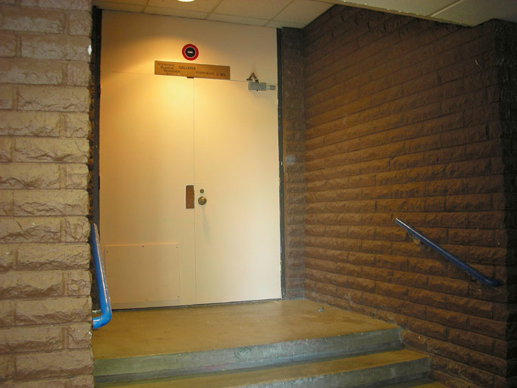 The Stevenson Blanche Gallery sits on the 3rd floor of the main building of Calarts Valencia campus, the same level as the D300 gallery and Langley (D300a) classroom of the previous inquiry. It is somewhat removed from the usual paths taken during the day, but locationally is the highest point in this wing of the building, initially established as the fine arts wing to the campus. Through time, the School of Art has spread out while some rooms such as the wood and metal shops and painting studio have not as of the realization of the installment in question. At the time of the project, the space existed as partial gallery space and partial foyer to the many doors within its interior, some retained as offices for teachers in the School of Art and some used as studio spaces for art students while one served as office and headquarters for the CalArts chapter of Afterall Journal. This arrangement is such because initially the room was first conceived as the School of Art central office, with teachers' private offices surrounding. Through time, as the art school grew, the art office moved to a different location in the building.