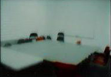 I opted to use slide film to denote a transition in time and space that had taken place, amplified further through its light-based projection. A view from within the empty classroom in which the critique course was taking place was photographed. This document visually served as an indirect indication that the other artworks in the display space were directly linked to a previous interior, presented independent of each other, prior to the current grouping. The image attempted to provide context of another architecture which supported this ongoing conversation yet provided no explicit record of any having occured; for instance, by means of transcript or audio files. As the standard function of a slide projector is to enlarge a still image through projected light with distance from the point of contact, the use of the format on this occasion was both literal and metaphoric. The projection filled my allotted area within the gallery and substantiated as both floor work and wall work, sculptural and pictorial, situated in a time-based format.
