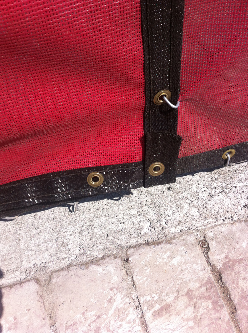 My proposal consisted in installing a privacy screen as a temporary canopy for the roofless concrete structure known colloquially as "The Chapel" among the communities utilizing Watt Hall, the Roski School of Art and Design and the School of Architecture. Commonly stretched along the perimeter of construction sites, the University of Southern California then had some eighty building projects underway on campus grounds where such screens were installed in a reddish hue approximate to the university's official cardinal color.