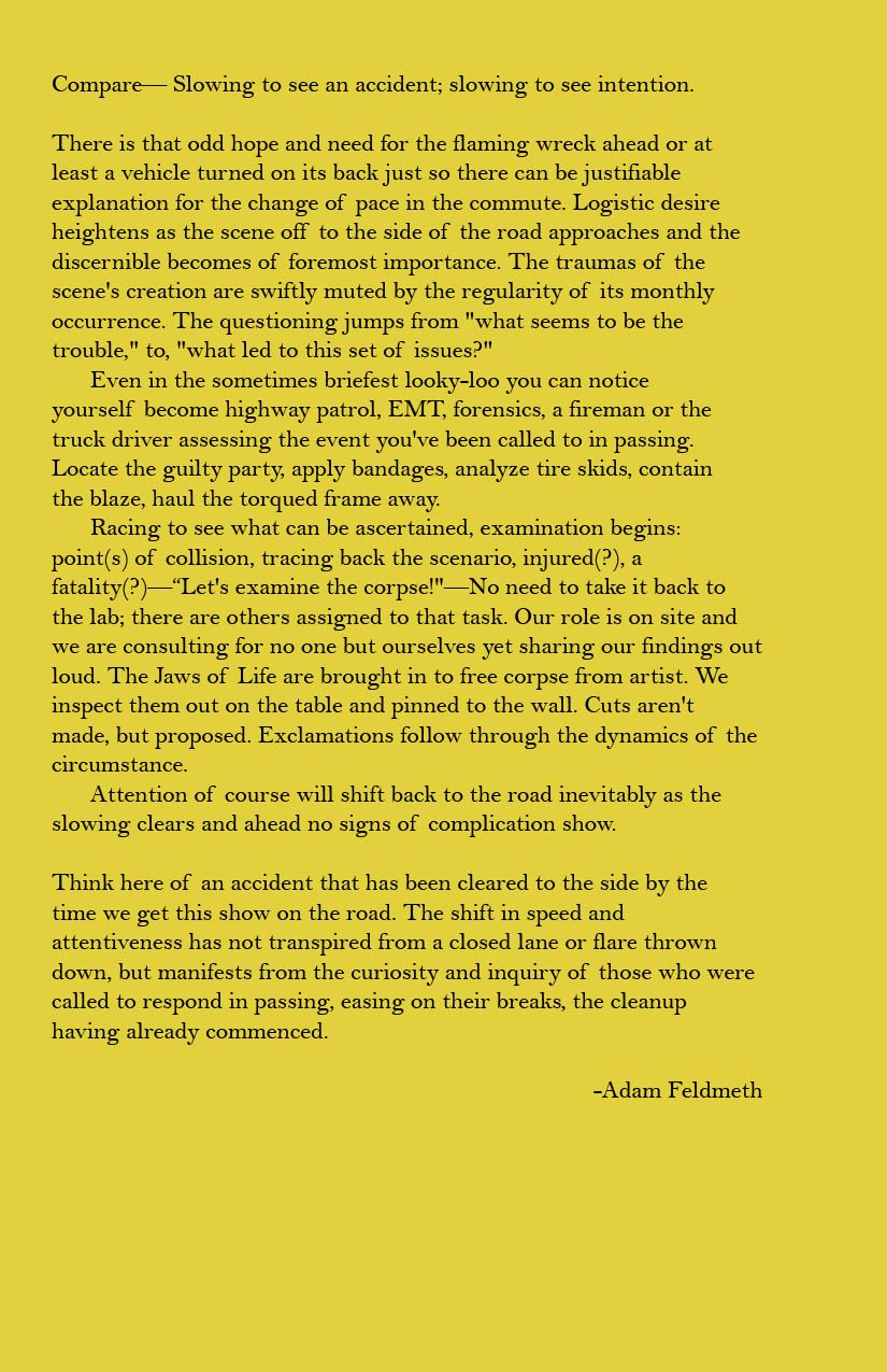 A loose-leaf, insert-page was written for "Beyond the Valley of the Ultra CalArts" catalog published in conjunction with the 2008 MFA CalArts group exhibition, "We Want a New Object". Edited with Benjamin Weissman (catalog editor)