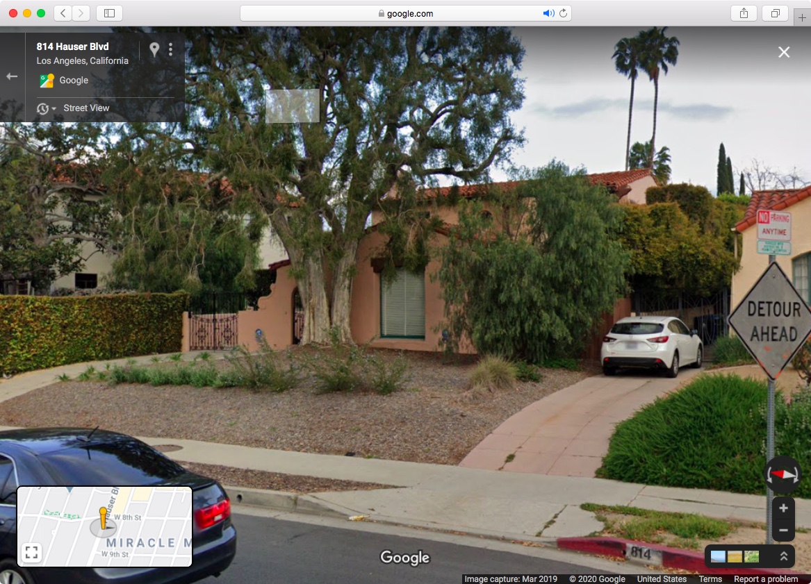 This adjacent house and its yard, which takes on a central cadence as backdrop in the film due to the angle of the subject matter, by-and-large demonstrates a modeling of more climate conscious landscaping relative to its geography. The landscaping that has occurred over the course of this sign's presence in the foreground, visible through the Google Street View "time machine" function, shows the transformation of what was in 2007, at the start of proverbial construction, a grassy yard evolving towards a draught tolerant one by 2018.